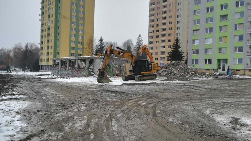Stroju s teleskopickým ramenom trvalo zbúranie väčšej časti paneláka tri dni. Celé to mal v rukách jeden operátor. Hydraulickými kliešťami vytrhával panely aj s kompletným vybavením bytov. Priznal sa, že ním pritom lomcovali emócie.