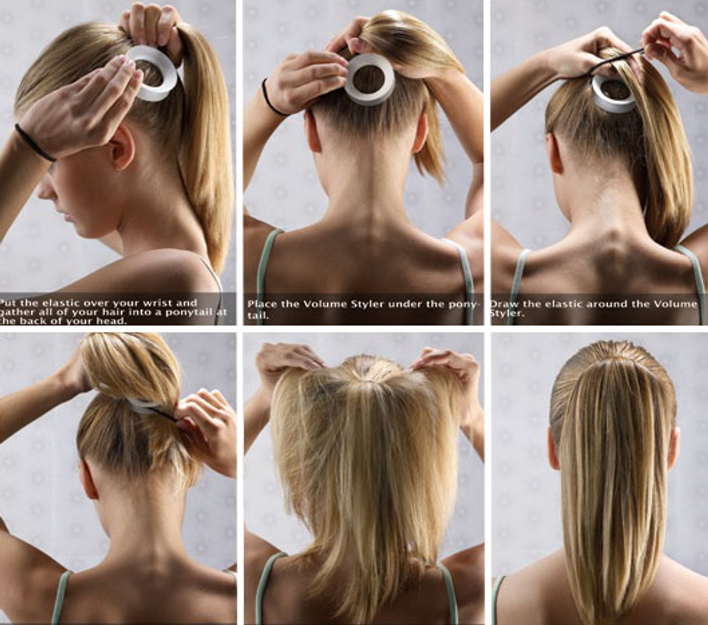 Vyčešte si vlasy do hladkého copu a zopnite ich gumičkou. Krúžok si potom dajte zospodu pod cop a pripevnite ho gumičkou. Objemný cop je na svete.