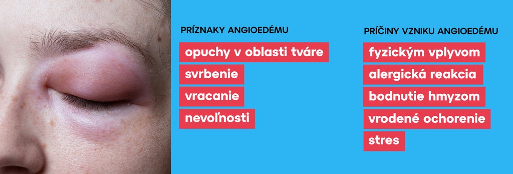 „Opuchy postihujú kožu (napr. opuch tváre pier, genitálu), ako aj vnútorné orgány (opuchy čreva, močového mechúra, opuch hrtana a jazyka), a to až s rizikom zadusenia. Pacienti často trpia akútnymi bolesťami brucha, nevoľnosťou, hnačkou alebo vracaním, ktoré sú spôsobené opuchom črevnej steny,“ upresňuje doktor.