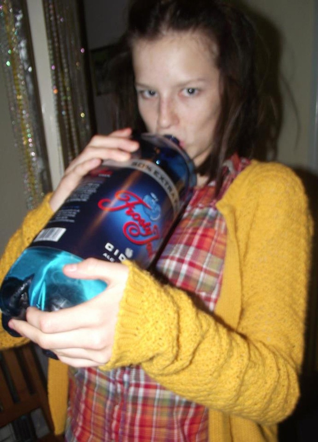 Alkohol ochutnala prvýkrát v 15-tich a už o rok z nej bola závisláčka. Keďže nemala peniaze, pila čo sa dalo. Najčastejšie kvasený jablkový mušt s rôznymi stupňami alkoholu. Dokázala vypiť aj šesť litrov denne. Matka ju vyhodila z domu.
