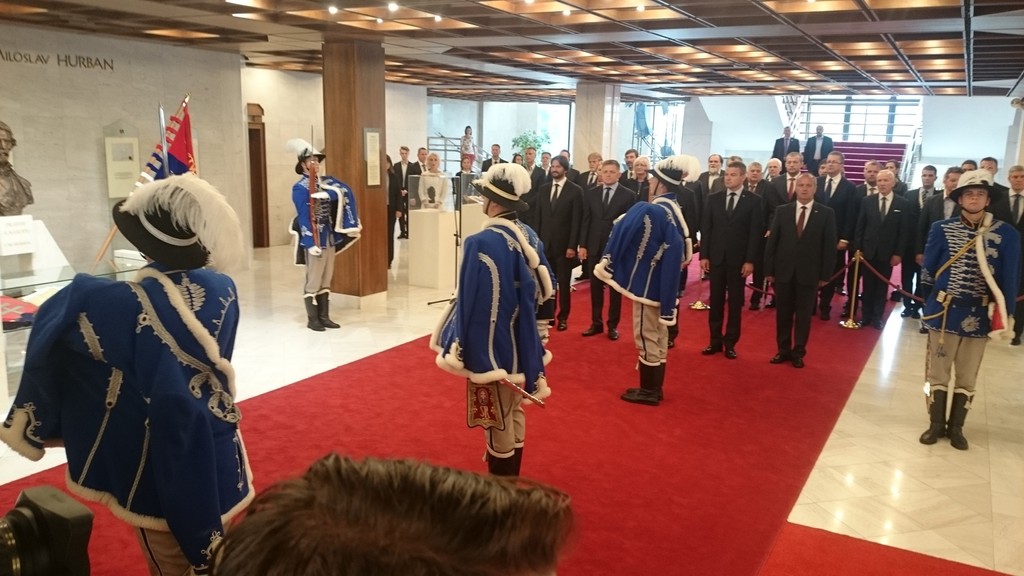 "Chcel by som, aby toto miesto bolo považované za srdce Národnej rady. Aby to bol národný oltár," vyhlásil po nástupe Čestnej stráže Danko. Zmeny v parlamente by mali podľa neho oživiť národné povedomie. Pri nástupe bol okrem Danka aj premiér Robert Fico (Smer-SD), celé vedenie parlamentu a niekoľkí poslanci a ministri. Prezident SR Andrej Kiska, ktorý je hlavným veliteľom ozbrojených síl, chýbal.