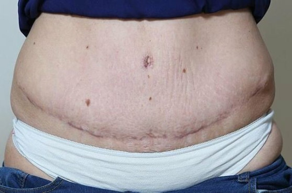 Britka absolvovala operáciu v máji minulého roka. Keď sa prebudila z narkózy, myslela si, že je všetko v poriadku. Akonáhle jej zložili obväzy, ostala zhrozená. Kožu mala extrémne vytiahnutú dohora a na bruchu mala obrovskú jazvu. Aj strie zostali.