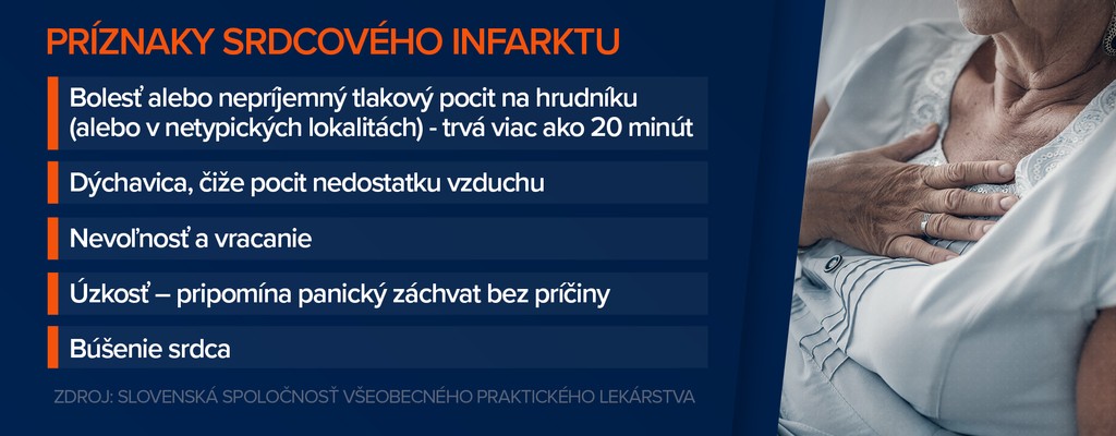 Najčastejším príznakom infarktu je prudká a silná bolesť na hrudi. Šéf komory zdravotníckych záchranárov František Majerský hovorí, že nejde len o jemný tlak.