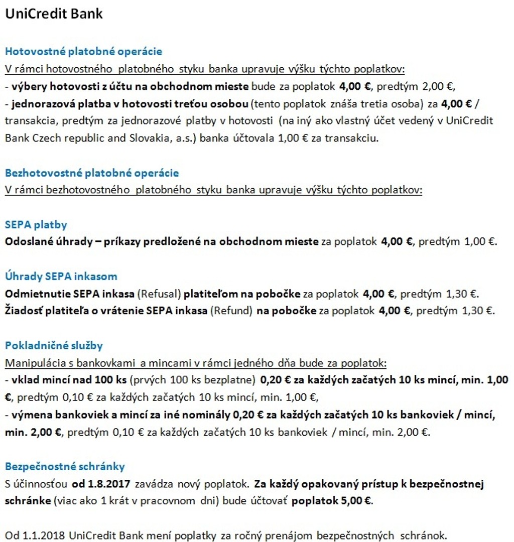 Položky, pri ktorých cena stúpne, sú využívané len minimálne, prípadne má klient alternatívu ako danú transakciu urobiť lacnejšie alebo bezplatne. Vklad hotovosti na vlastný účet je stále bez poplatkov.
