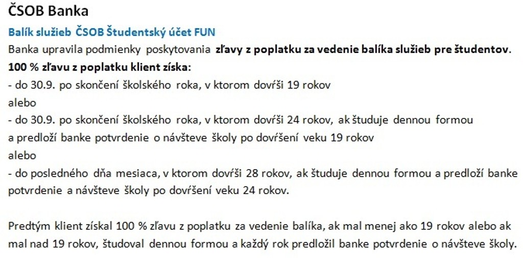 ČSOB od 1.9.: