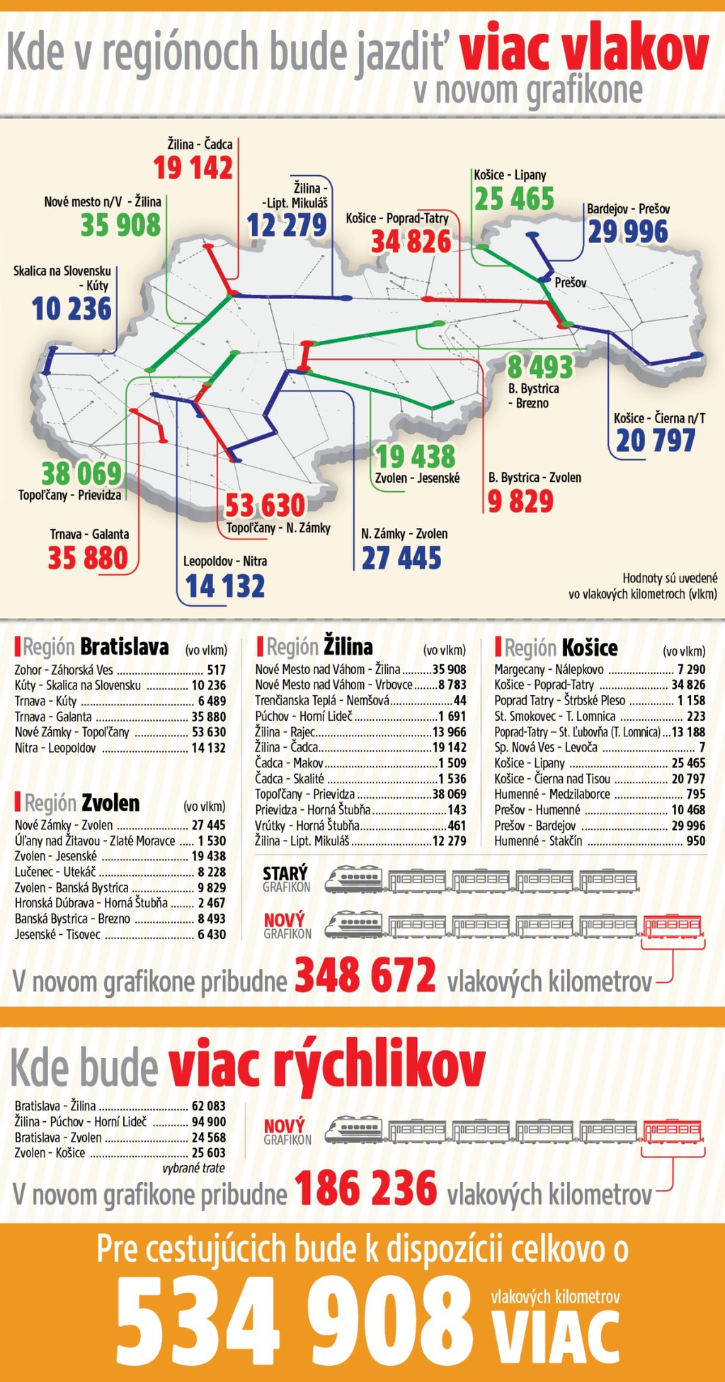 Vlakové kilometre navyše, ktoré najazdia spoje od polovice decembra, sa podľa ministerstva prejavia najmä v zahustení dopravy a predĺžení trás viacerých spojov. "Okrem iného pribudnú aj nové víkendové spoje. Vlaky, ktoré premávali len v niektorých dňoch, budú po novom jazdiť každý deň," vymenoval niektoré zmeny hovorca ministerstva dopravy Martin Kóňa.