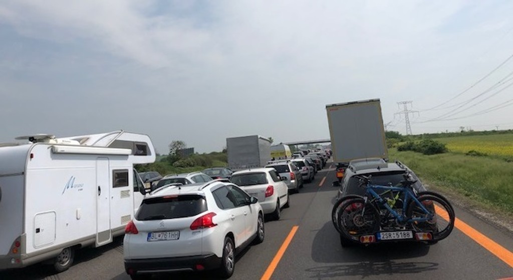 Vodiči čakali v dlhých kolónach, ktoré sa začínali za Bratislavou. Upchaté boli aj vedľajšie cesty.