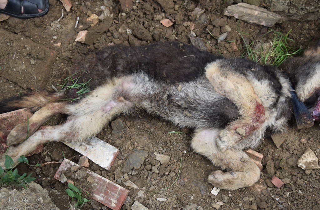 Otrasný prípad týrania psa. Na dvore rodinného domu v obci Nižná Kaloša neďaleko Rimavskej Soboty našli mŕveho kríženca vlčiaka. Pes mal len pol roka. Policajti našli telo zvieraťa aj s tehlou zakopané v jame.