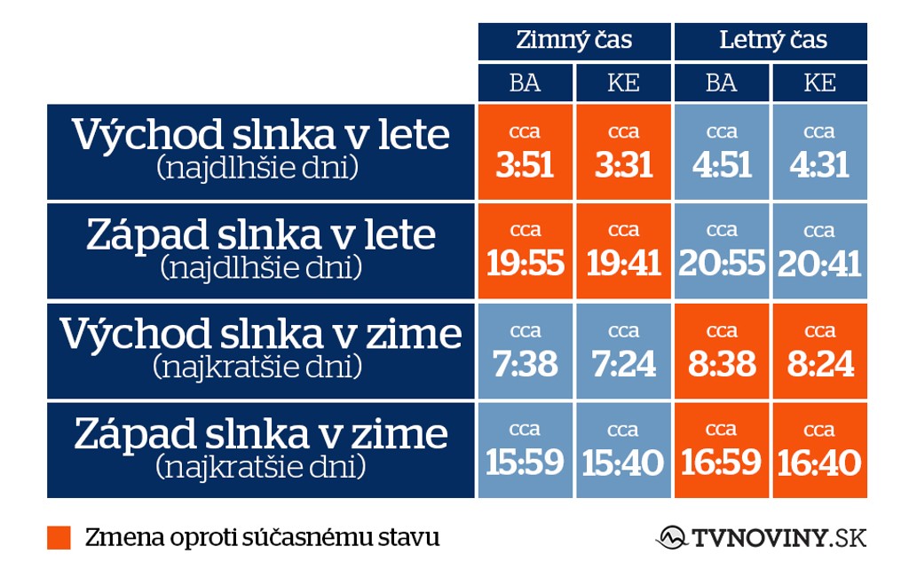 Takto budú vyzerať najldhšie a najkratšie dni po prijatí jedného z časov