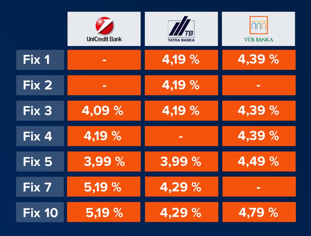 „U nás vždy boli najpopulárnejšie kratšie fixy, a to 3- a 5-ročný, preto ich máme najvýhodnejšie. Navyše sme pri poslednej úprave dokonca zjednotili sadzbu pri 3- a 4-ročnom fixe, aby sme podporili aj ten,“ ozrejmil Miša.