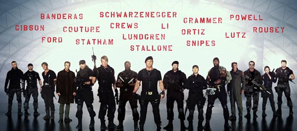 Vo filme sa stretli zrejme všetci akční hrdinovia. Okrem Mela a Sylvestera v ňom uvidíte: Arnolda Schwarzeneggera, Jasona Stathama, Jeta Liho, Dolpha Lundgrena, Welseyho Snipesa, Kellana Lutza, Harrisona Forda, Antonia Banderasa, Terryho Crewsa, Randyho Coutureho, Roberta Daviho, Millu Jovovich a Kelseyho Grammera.