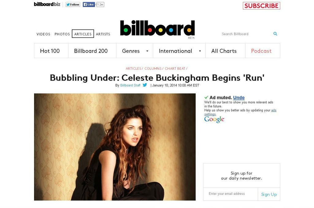 Slovenská speváčka Celeste Buckingham sa zapáčila aj americkému magazínu Billboard. V hudobnom týždenníku o 18-ročnej bývalej SuperStaristke informujú v rubrike Bubbling Under, v ktorej každý piatok predstavujú nových nádejných interpretov či interpretky. Buckingham opisujú ako "umelkyňu s veľkým hlasom", ktorá nedávno podpísala zmluvu s vydavateľstvom rappera Pitbulla Mr. 305 Inc., pričom pridali aj videoklip k piesni Run Run Run.