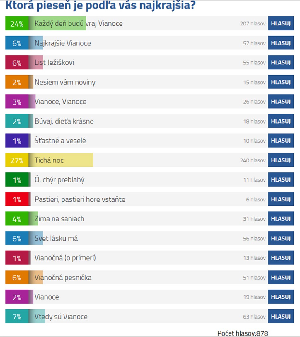 Vy ste mohli v našej ankete hlasovať, ktorá sa vám najviac páči. Anketu sme uzatvorili úderom polnoci Štedrého dňa.