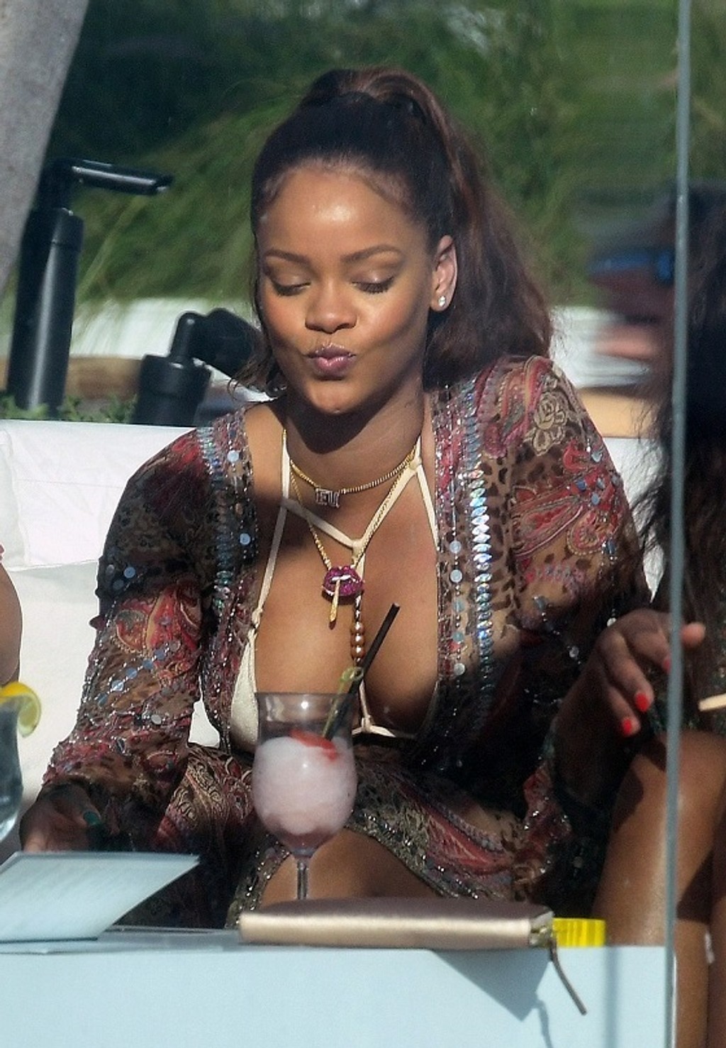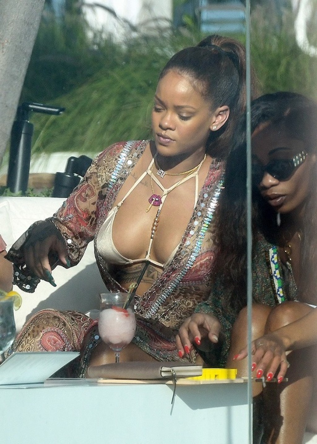 Autorka najnovšieho singlu Love On The Brain z posledného štúdiového albumu Anti si na seba dala biele plavky, ktoré sa snažila prekryť šatami s flitrami. Márne. Pri pohľade na barbadoskú krásku všetkým padne zrak na jej dekolt. Rihanna sa však rozhodne nemusí hanbiť za svoju prirodzenú krásu.