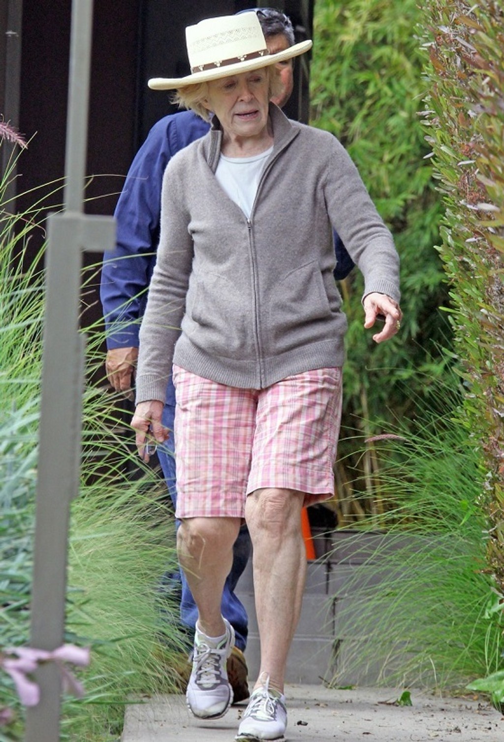 Sedemdesiatštyriročnú herečku zastihli fotografi v záhrade jej sídla v Los Angeles. Na sebe mala kraťasy, mikinu a tenisky. Na hlavu si ako ochranu pred slnkom vzala klobúk. Herečka sa zrejme rozhodla urobiť zmeny v záhrade, keďže na fotkách dáva inštrukcie záhradníkovi.