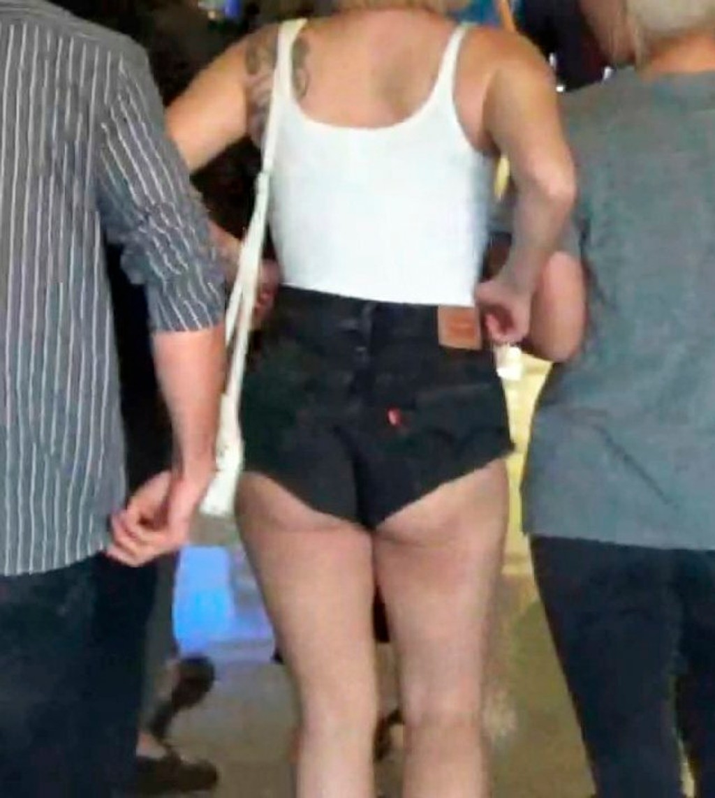 Na túto príležitosť si zobrala jednoduché biele tielko a krátke denimové šortky. Tie si ale vytiahla až príliš vysoko a vytŕčal jej z nich zadok.