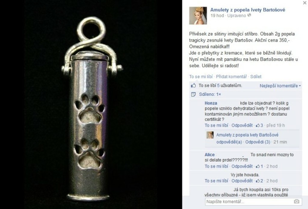 Čo sa deje okolo úmrtia Ivety Bartošovej prekračuje všetky medze. Na Facebooku sa objavila skupina ľudí, ktorá tvrdí, že vám za takmer 13 eur predajú popol Ivety Bartošovej.