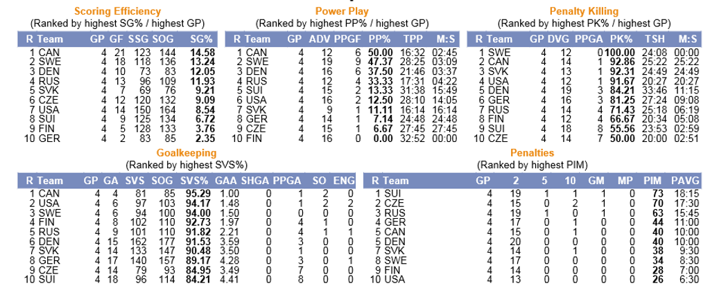 Štatistiky z turnaja sú však viac optimistické. V reči čísel nás naši západní susedia prevýšili len v produktivite jednotlivcov. David Patrňák nazbieral 7 bodov (1+6), zatiaľ čo Martin Réway 5 bodov (3+2).