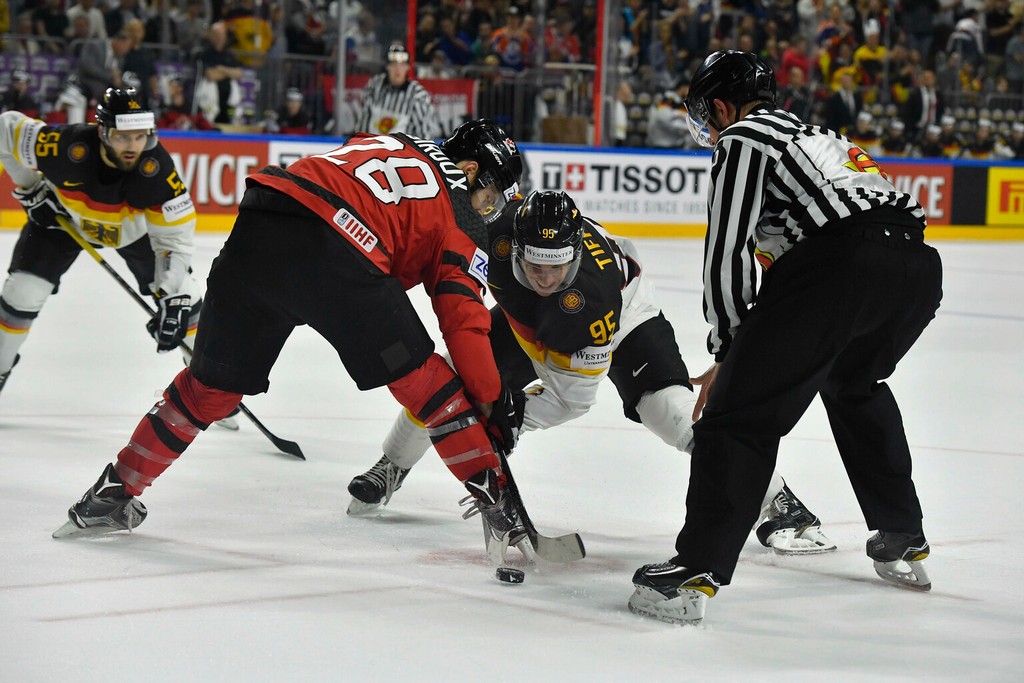 Kanaďania podľa predpokladov dominovali, Nemci im však v prvej tretine dokázali konkurovať a niekoľkokrát pohrozili. Prvú veľkú šancu si zámorskí hráči vypracovali v 4. minúte, no Grubauer sa stihol presunúť a nedovolil O'Reillymu zasunúť puk do odkrytej bránky.