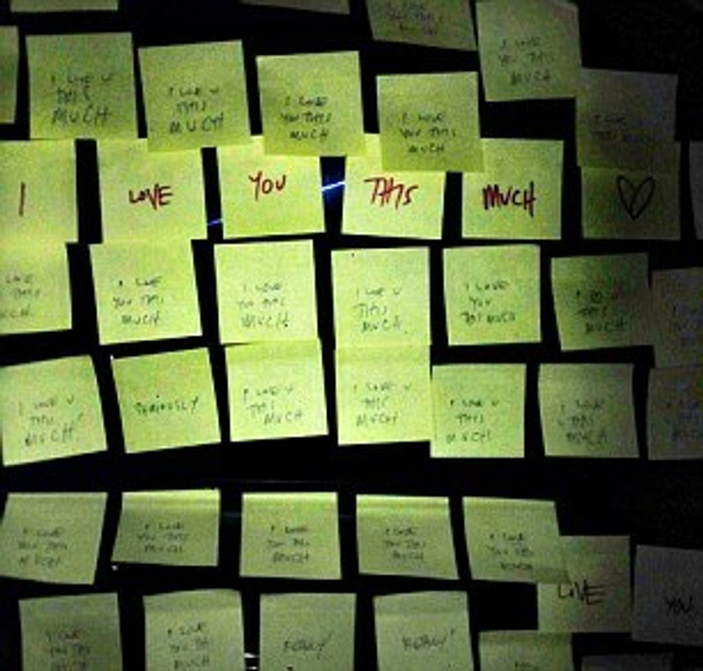 Bellina tak ako každý deň šla do práce. Keď sa vracala domov, takmer stratila na parkovisku reč. Na jej aute bolo prilepených 1500 žltých samolepiacich papierikov s veľkými vyznaniami lásky.