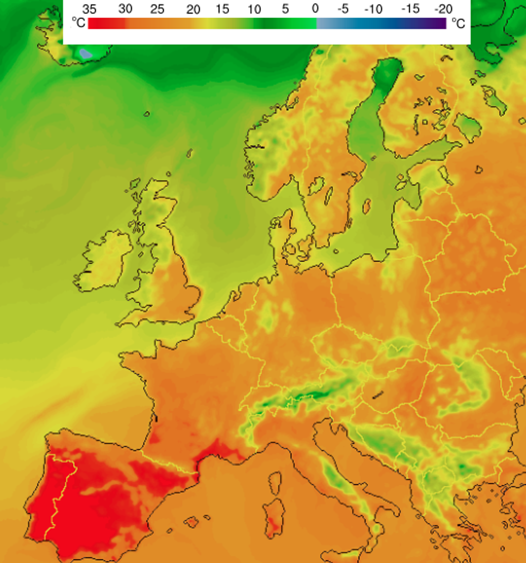 V Portugalsku budú najvyššie teploty vo vnútrozemí a na juhu krajiny. Na väčšine územia budú teploty okolo 30 až 35 stupňov, viac ako 40 stupňov sa očakáva v provincii Beira Baixa, v údolí rieky Tajo a v regióne Alentejo. Aj v Portugalsku hlásia meteorológovia tropické noci, píše lavanguardia.com.