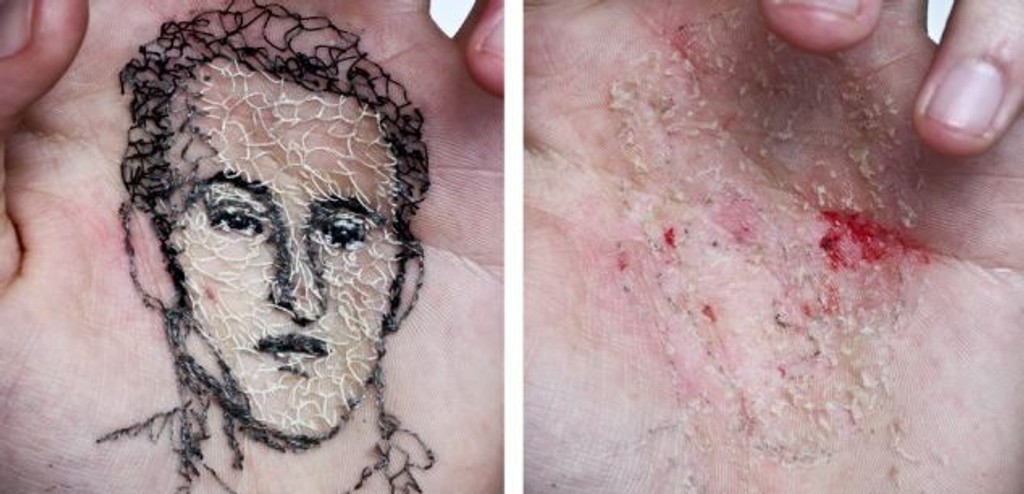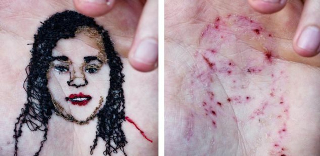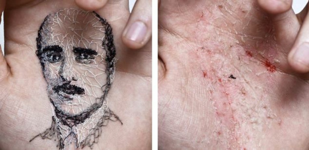 Špaliensky umelec má zrejme posunutý prah bolesti. Portréty svojich blízkych si vyšíva do dlane.