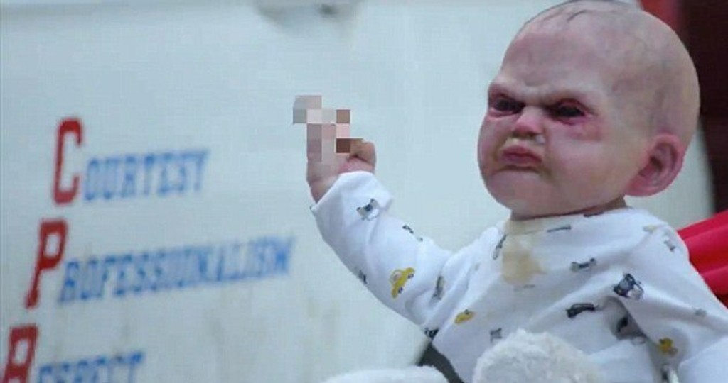 Do opusteného kočíka na diaľkové ovládanie položili plačúcu bábiku. Keď sa okoloidúci pozreli doň, zažili neuveriteľný šok. Niektorí si aj poriadne zakričali. Dieťa totiž vyzeralo ako malý diabol.