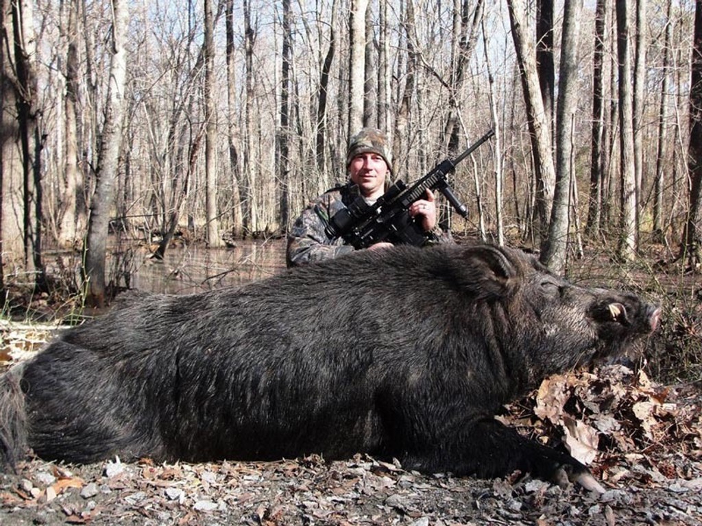 Jett Webb s Bertie County v Severnej Karolíne si môže gratulovať. Jedinou ranou skolili túto 225-kilovú divú sviňu.