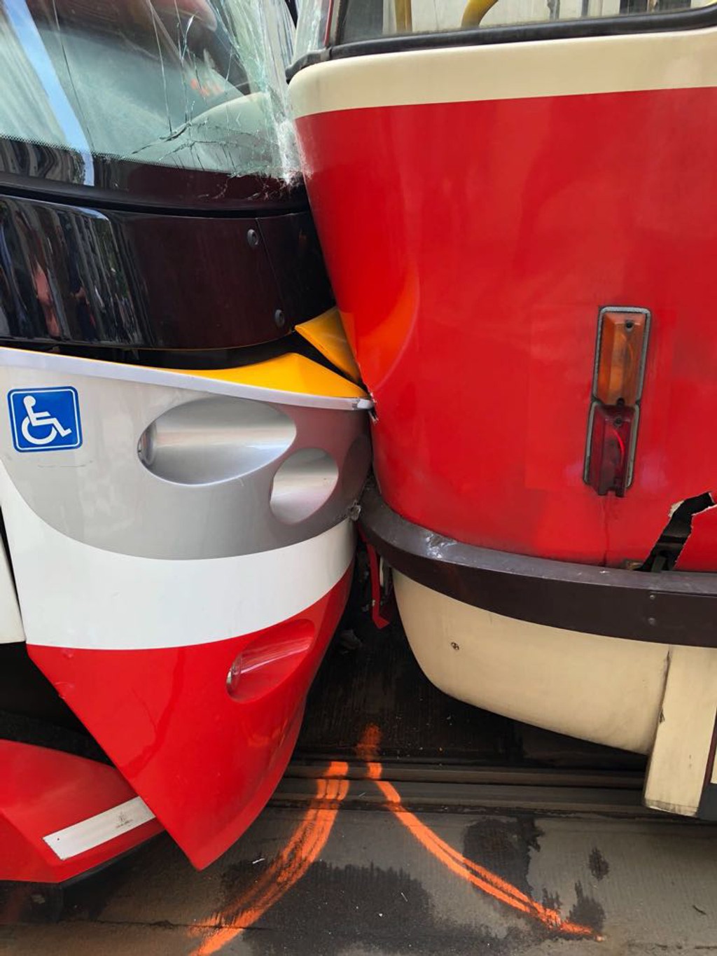 Dve električky sa v piatok (29. 6.) popoludní zrazili na zastávke Štěpánska pri Karlovom námestí v Prahe.