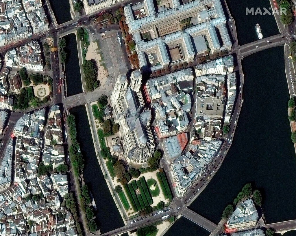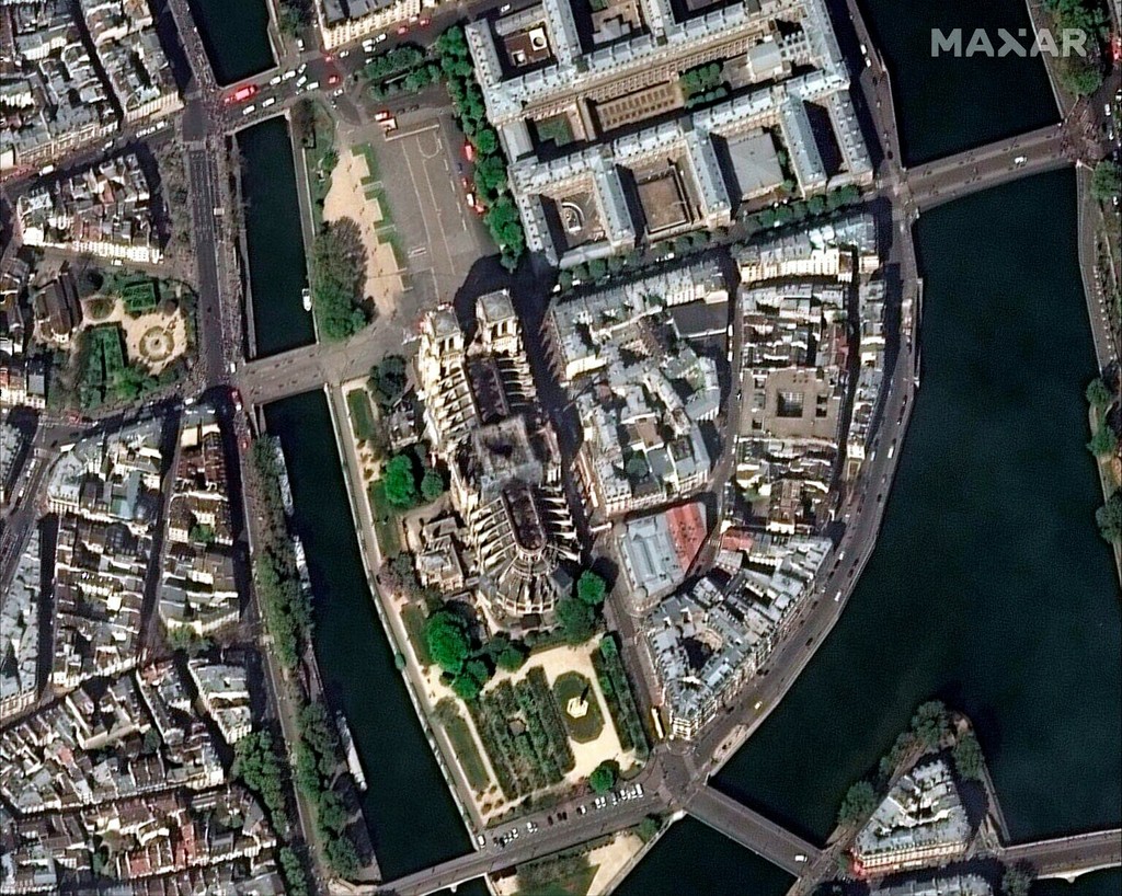 Prvé satelitné snímkz katedrály Notre-Dame po požiari ukázala svetu súkromná družica SkySat spoločnosti Planet Labs.