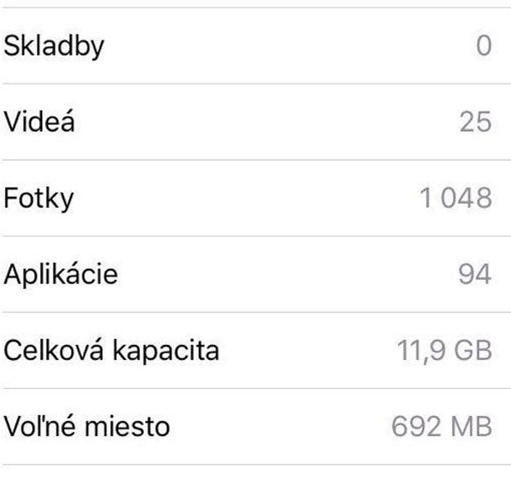 V sekcii Nastavenia >Všeobecné>Informácie si pozrite, koľko máte voľného miesta. Toto číslo si dobre zapamätajte. U nás to bolo 692 MB.